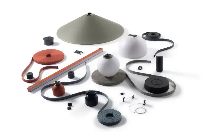La colección dispone de esferas de vidrio; pantallas cónicas y semiesféricas que iluminan un espacio suspendidas en el aire cual trapecistas; y discretos focos y luminarias lineales para una iluminación más específica.
